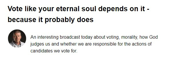 Mike Adams even put a video up claiming that to not vote is a sin against God.