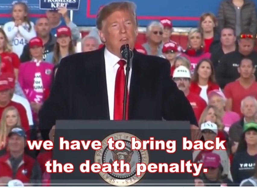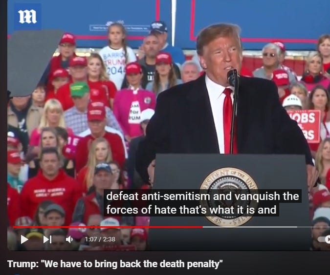 TRUMP EVEN CALLS FOR A ‘RETURN TO THE DEATH PENALTY’ for American citizens that somebody in power deems to be ‘antisemetic’.