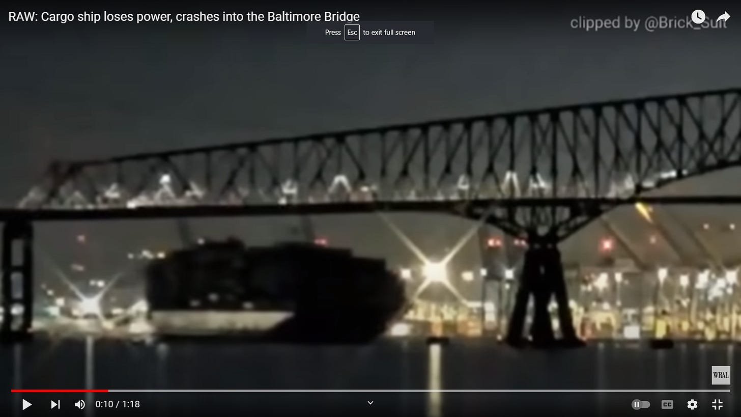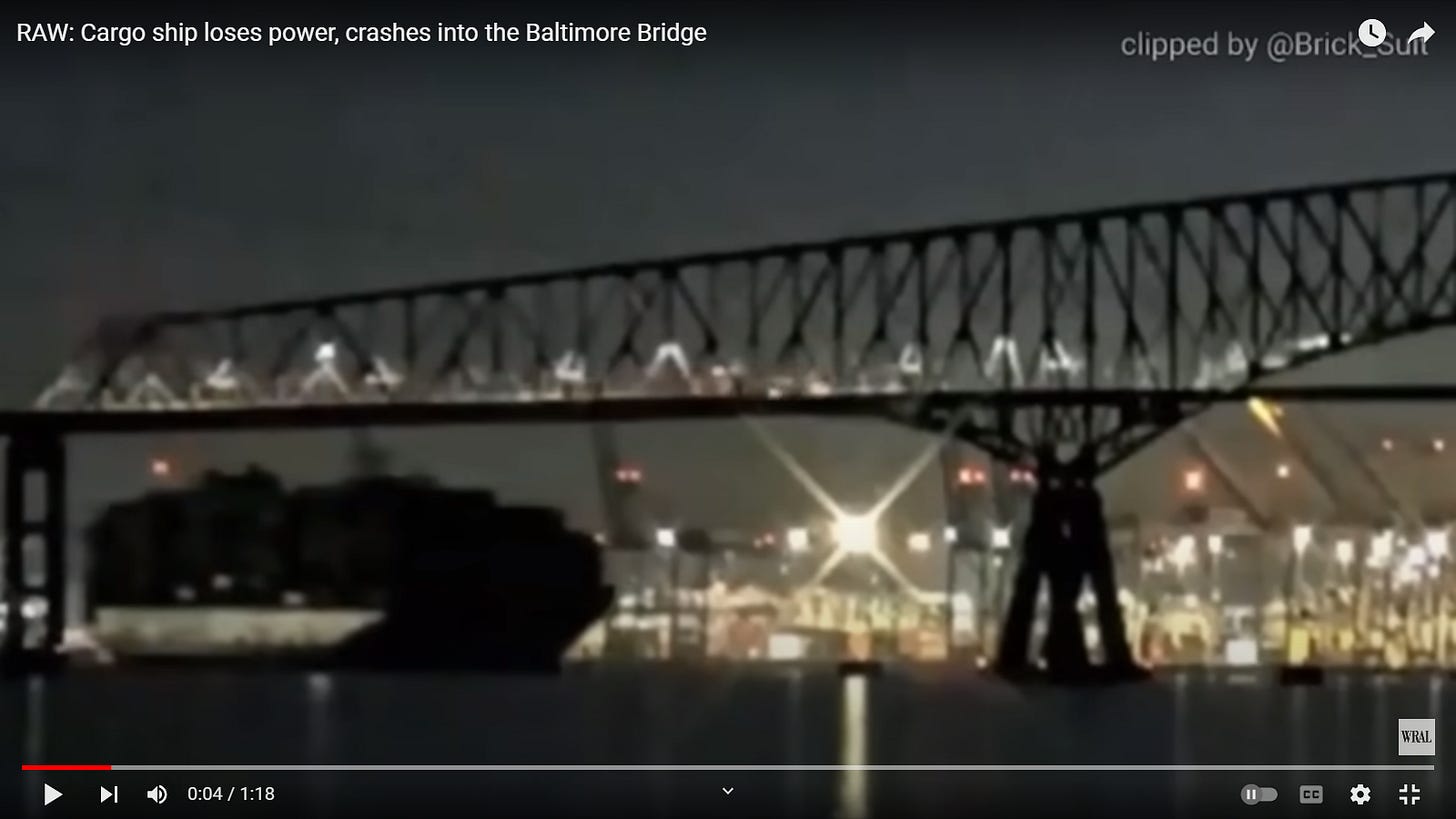 I WROTE ABOUT THE GRID CRASHING, THE NEXT DAY THE GRID CRASHED. YESTERDAY I WROTE ABOUT A DISASTER IN YELLOWSTONE, TODAY A BRIDGE FELL IN BALTIMORE ->OBVIOUSLY NOT AN ACCIDENT. YELLOWSTONE TO BE NEXT?