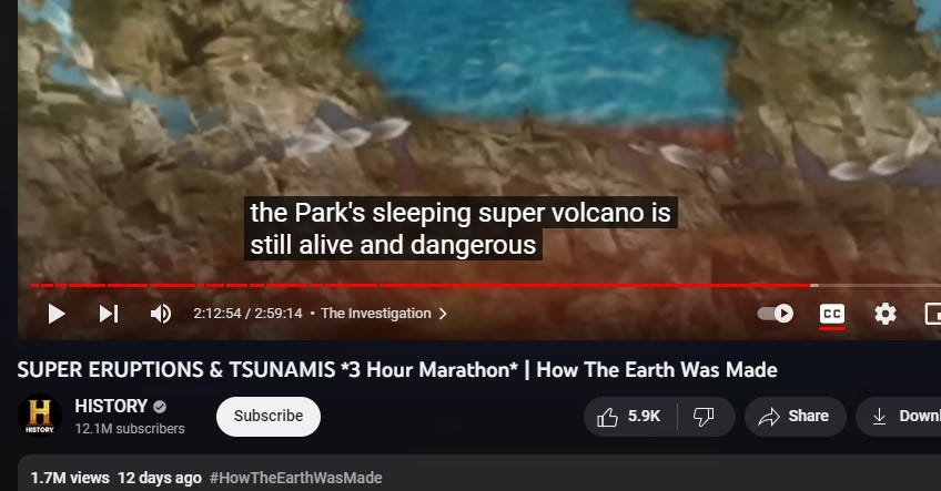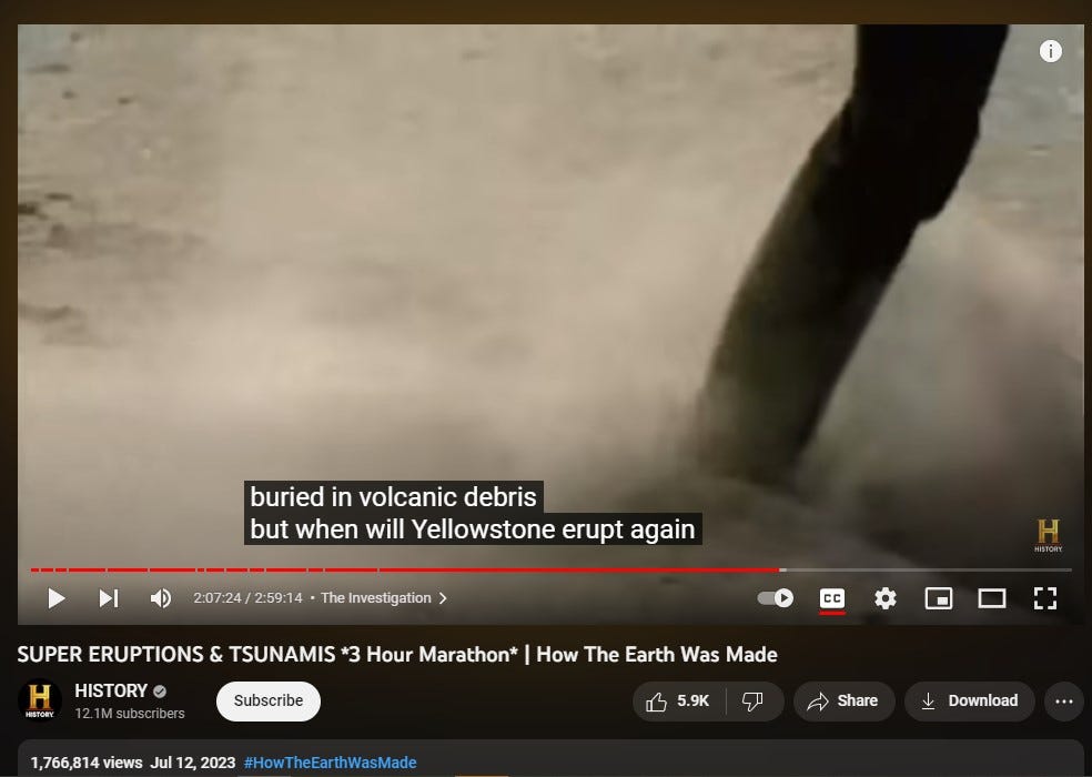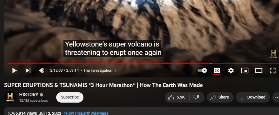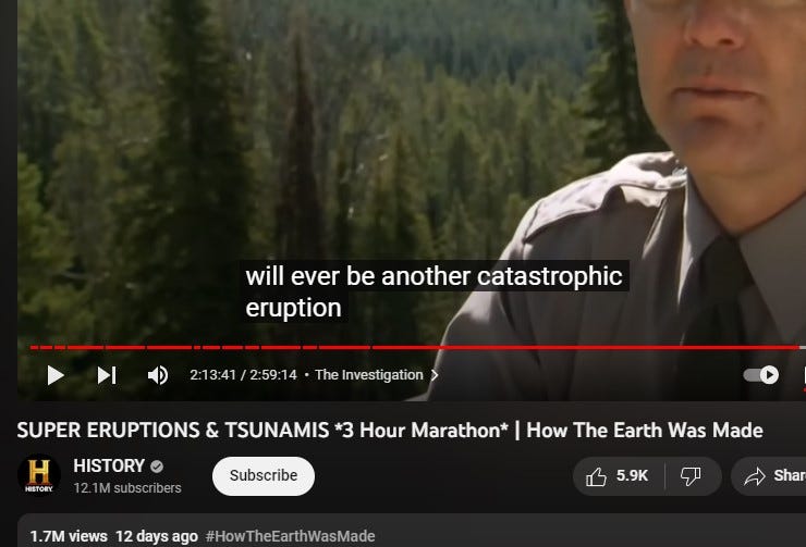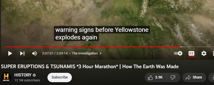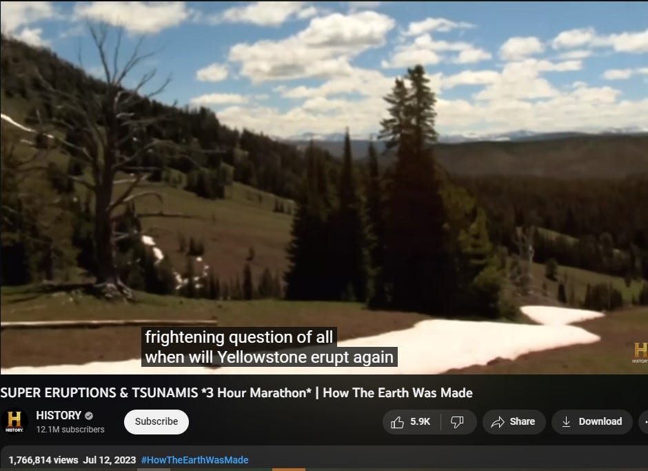And this gal travels to Iceland and makes a film for social media about the volcanos there,.. saying ‘WOW, they said this wasn’t going to happen.” [the vocano in Iceland'], than adds (on cue).. ‘They said the same thing about YELLOWSTONE!”