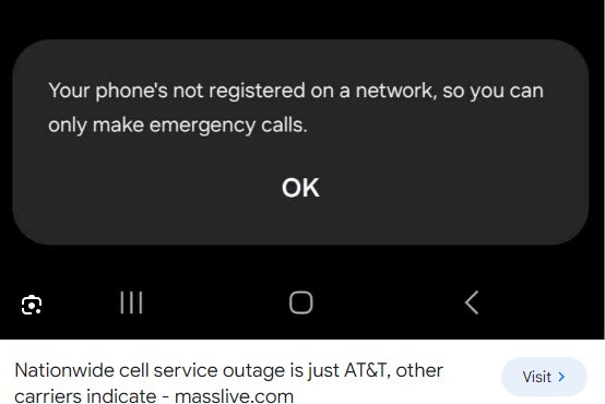 The very next day, February 22, 2024 - Cell phone service was down all across America - from multiple services..