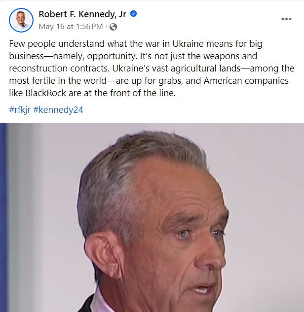 ROBERT F. KENNEDY JR. WILL HE GET ELECTED? DOUBTFUL, BUT HE'S THE ONLY CANDIDATE WORTH SUPPORTING. HE'S THE ONLY CANDIDATE THAT MAKES THE LEAST BIT OF SENSE... The cold blooded truth about Ukraine.