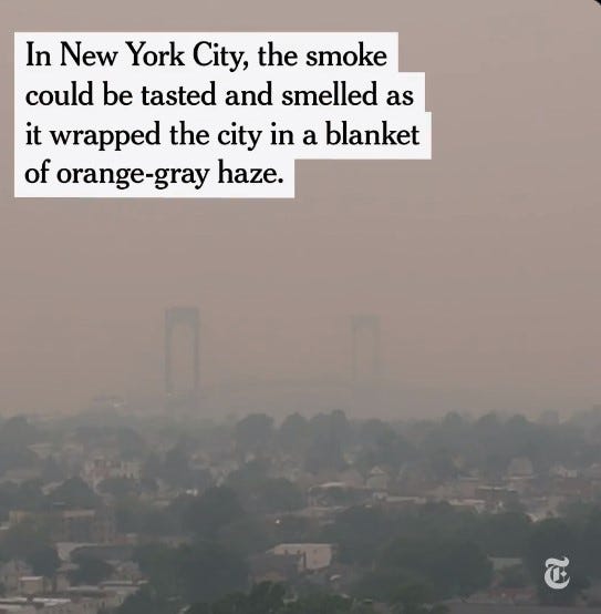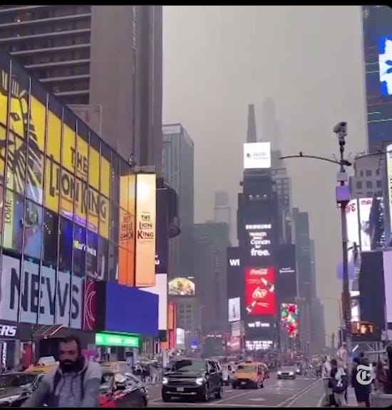 New York City was engulfed today, in fire smoke smog from Canada.