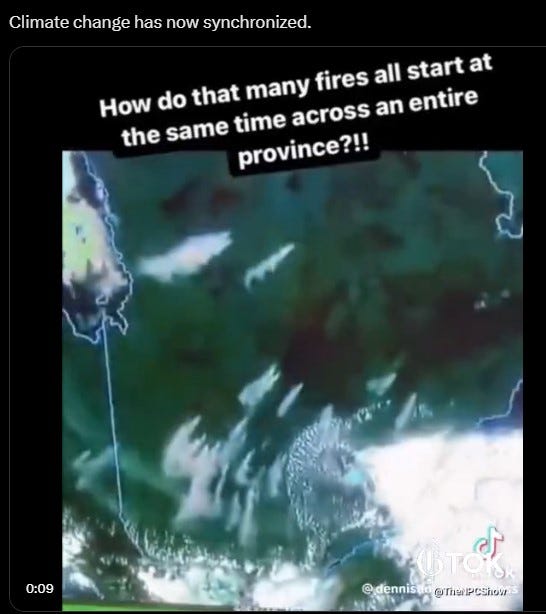 Many of the fires in Canada begin SIMULTANEOUSLY.