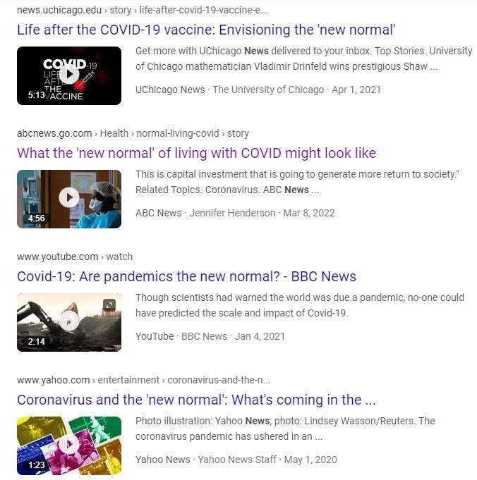 and.. DRUMROLL..…. Here’s a series of the PSYOP - ‘The [not so] NEW NORMAL’