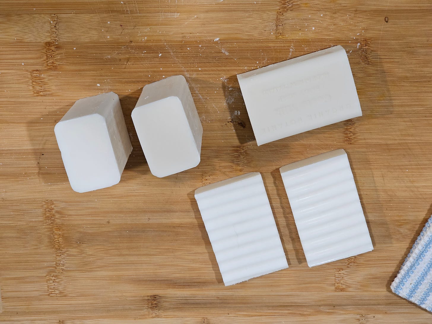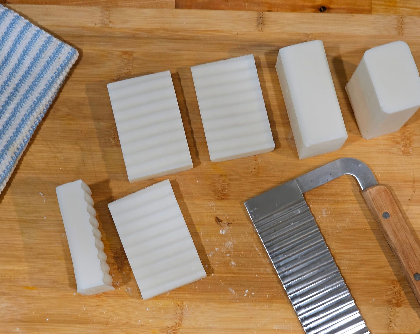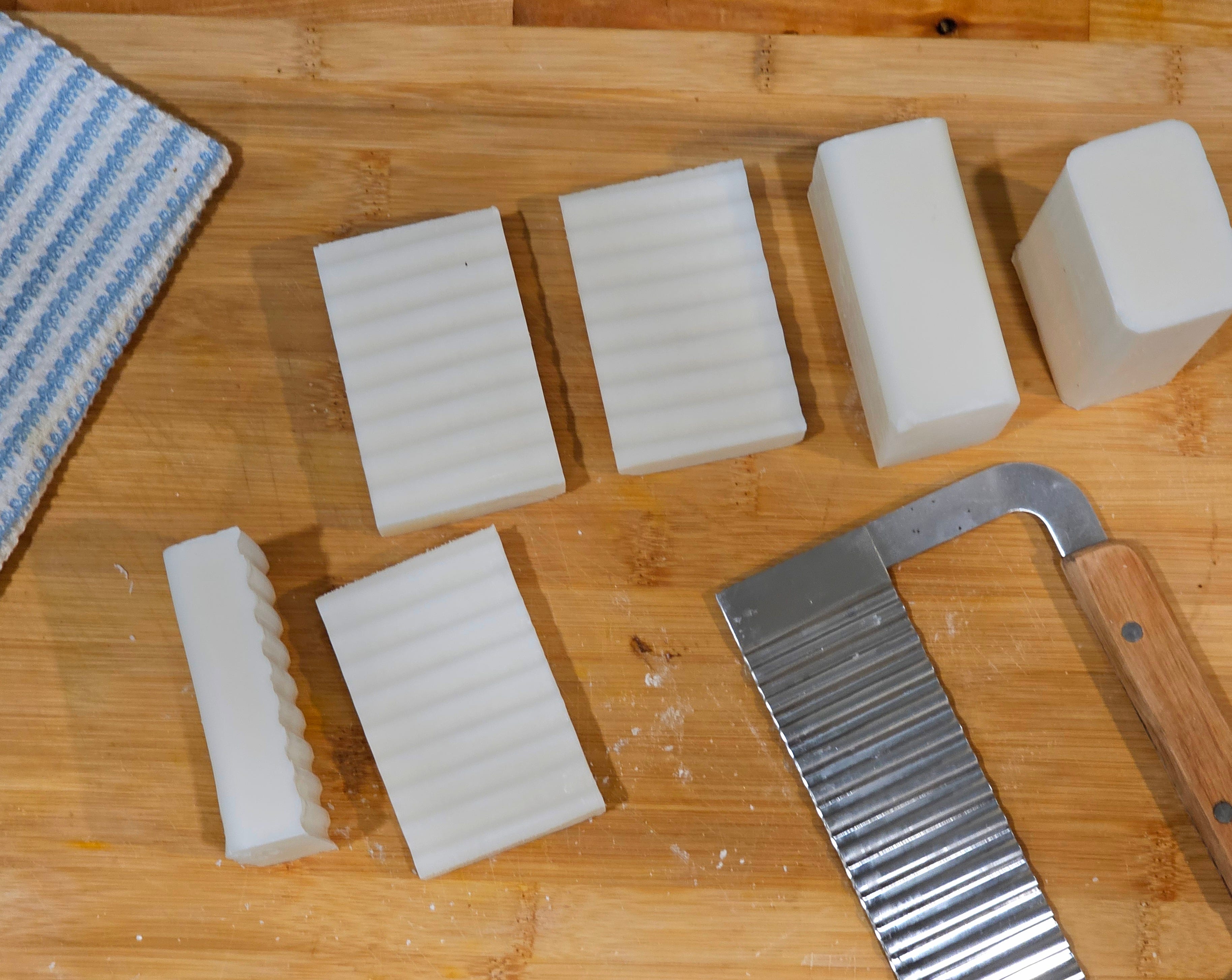 When you cut a bar of soap, you run the risk of the thing breaking, or you doing a poor job and the halves aren’t ‘1/2’ or they’re crooked.. etc. Just this week, when I was cutting soap, I broke a bar making half of it useless, which defeats the purpose.