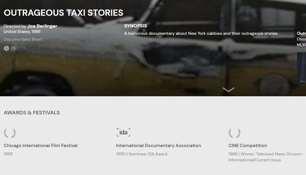 (The story is partially told in a film documentary ‘Outrageous Taxi Stories’, by Joe Berlinger. You used to be able to see it online, but satan saw to it that it was removed. I still have my VHS copies).