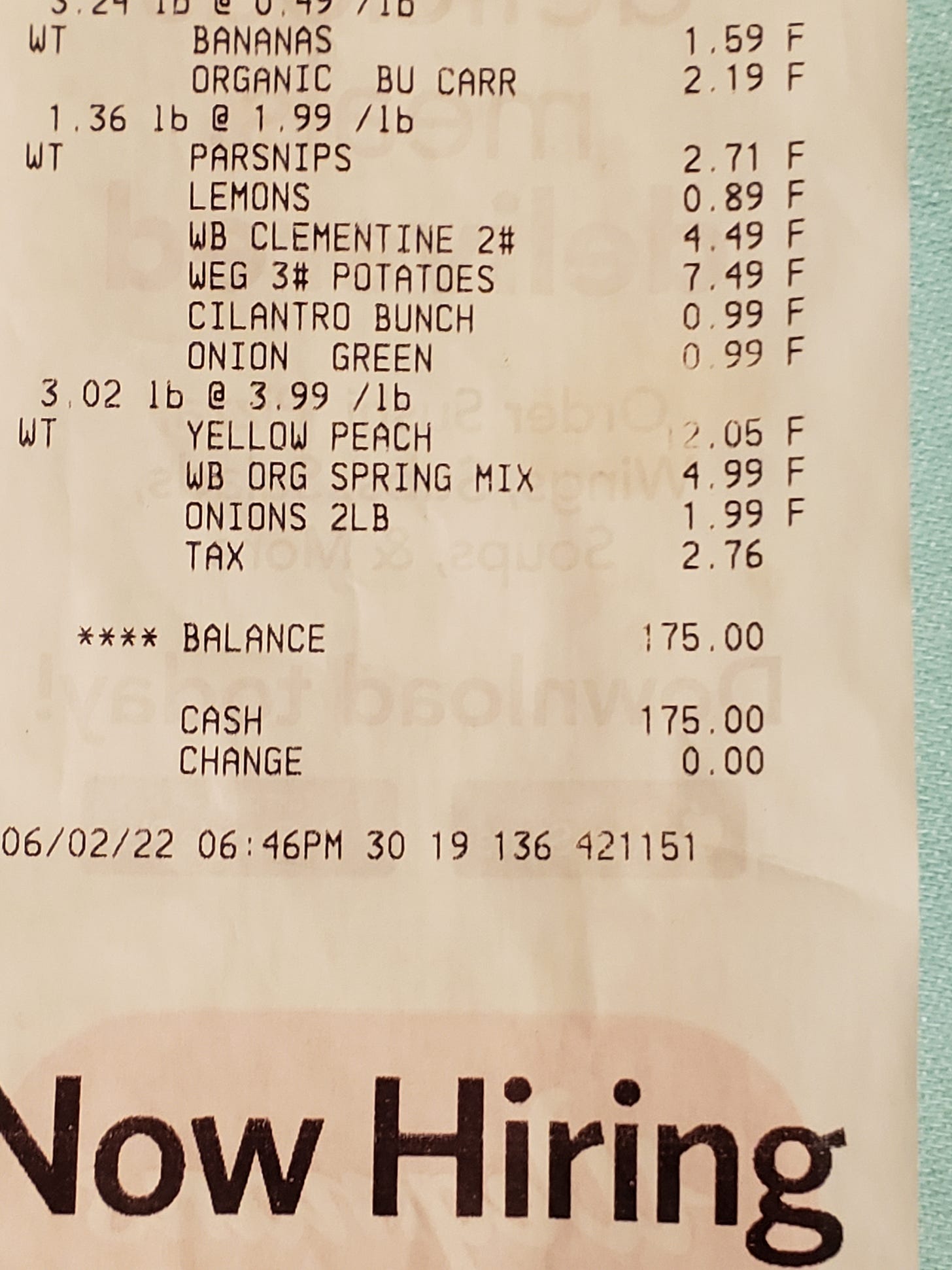 On 2 visits to Wegmans last year, the total of my groceries came to the EXACT amount of cash I had in my pocket. Not a penny off.! I only found out how precise my shopping spree was, when I got to the register! Lol
