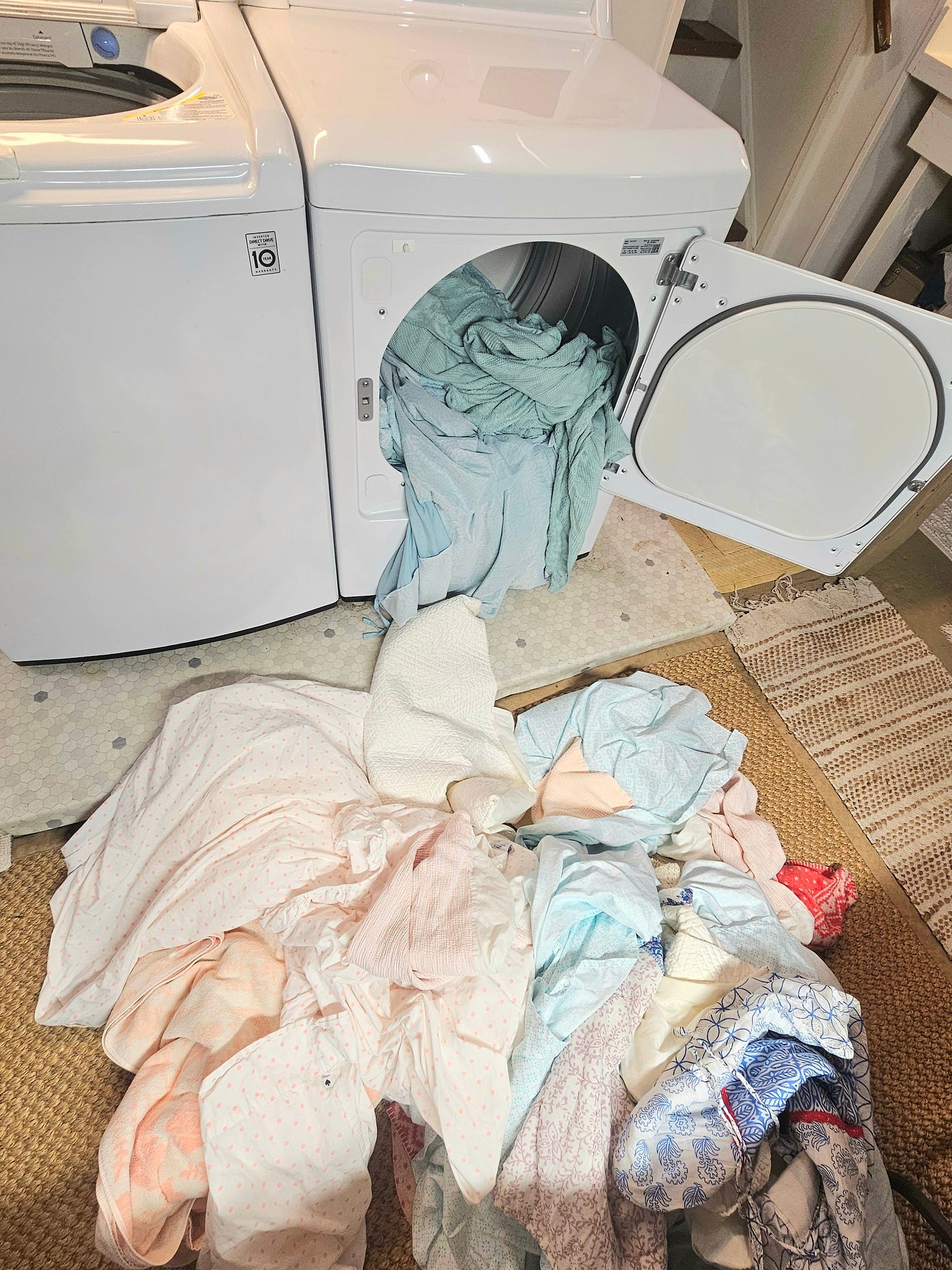 About 2 years ago, I bought a high capacity LG Washing machine - so it was out of warranty already, when it went on the fritz last week. Which coincided (of course) with our Bed & Breakfast FULL of people last weekend, and a ton of laundry needed to now be done for incoming guests.